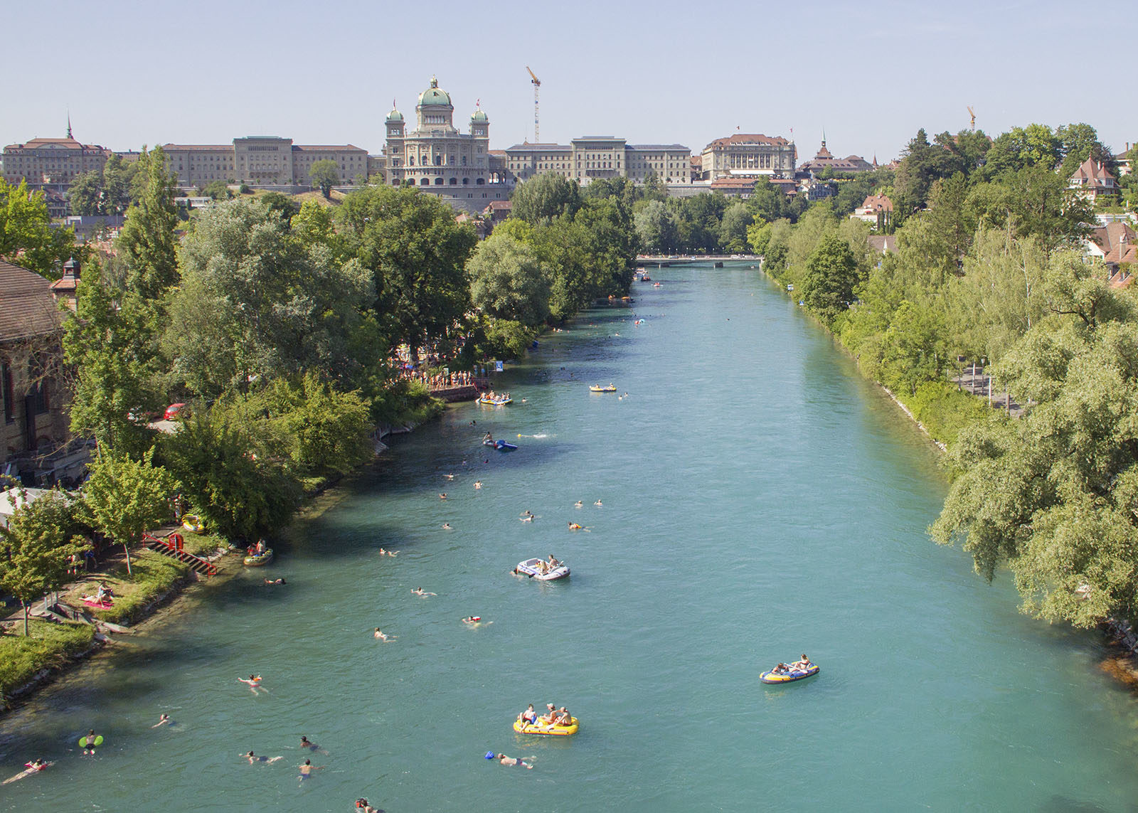 Ist die Sommersaison gestartet und laden die Temperaturen dazu ein sich im kühlen Nass eine Erfrischung zu gönnen, lassen die Bernerinnen und Berner nicht lange auf sich warten. Beliebt ist ein Gang in die Aare im Berner Marzili, wie auch die Zahlen der Stadt Bern zeigen. Gemessen wurden nicht nur die Eintritte ins Marzilibad, sondern auch die Aarengänger*innen, die zur Schönaubrücke oder sogar bis ins Eichholz gepilgert sind, um sich anschliessend die Aare abwärts treiben zu lassen. Das Sportamt der Stadt Bern veröffentlichte die Zahlen vom Juli, wo während einer Stunde gemessen wurde. Zwischen 17:00 und 18:00 Uhr wurden am 31. Juli ganze 3’172 Personen registriert, die den Aareweg hinauf gepilgert sind. Im Monat Juli wurden im Marzilibad insgesamt 190’052 Austritte beim Spitz gemessen.